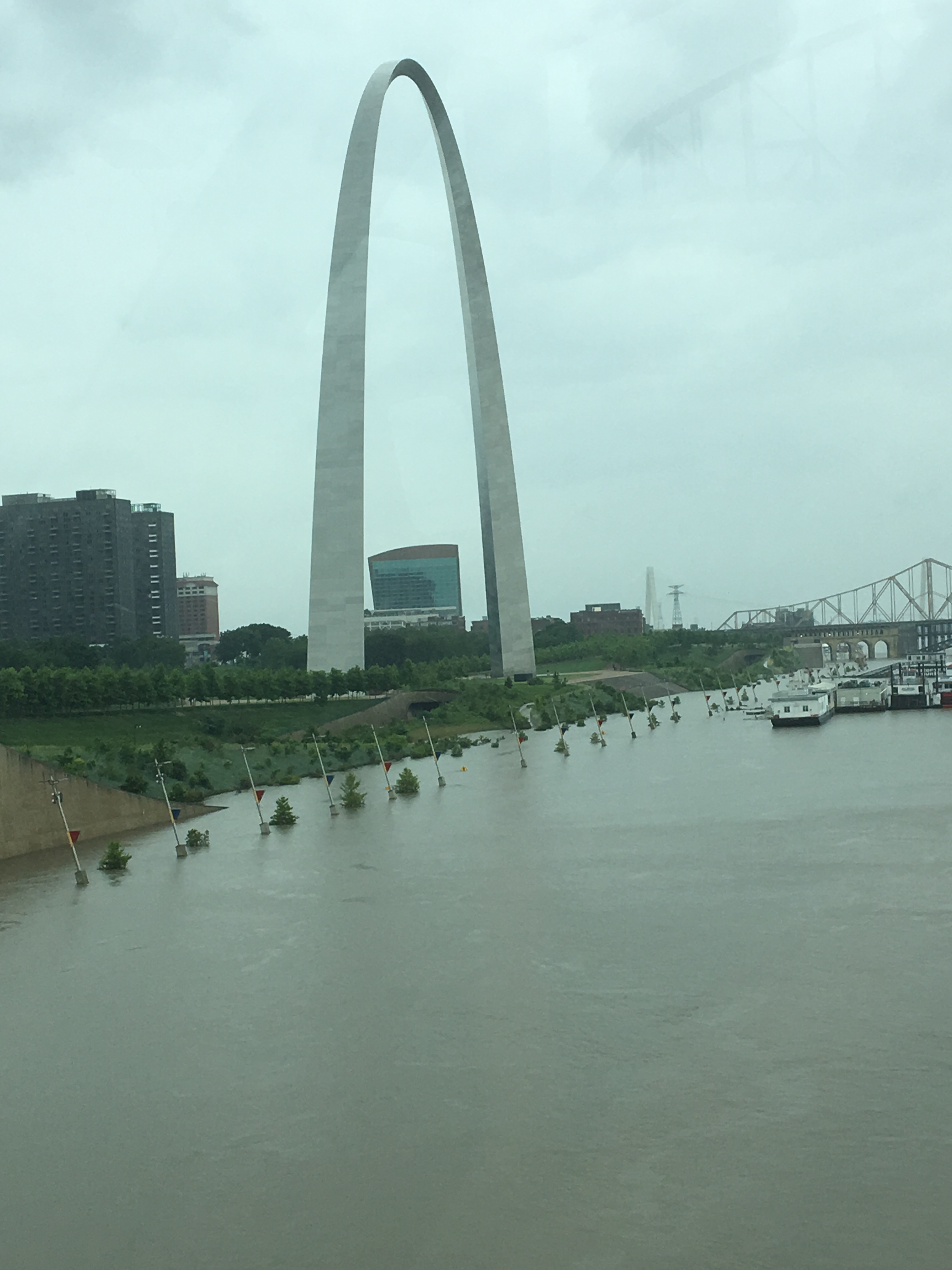 Leaving Nashville, finally heading in a westerly direction after more north- south traversing, we crossed the mighty Mississippi at St. Louis. Do take notice of the trees in the water in the Mississippi below. The constant rain this spring in the midwest has pushed all of the rivers way beyond their banks and caused extensive flooding. We encountered many rivers out of their banks; not only the Mississippi, but also the Missouri and the Arkansas rivers.