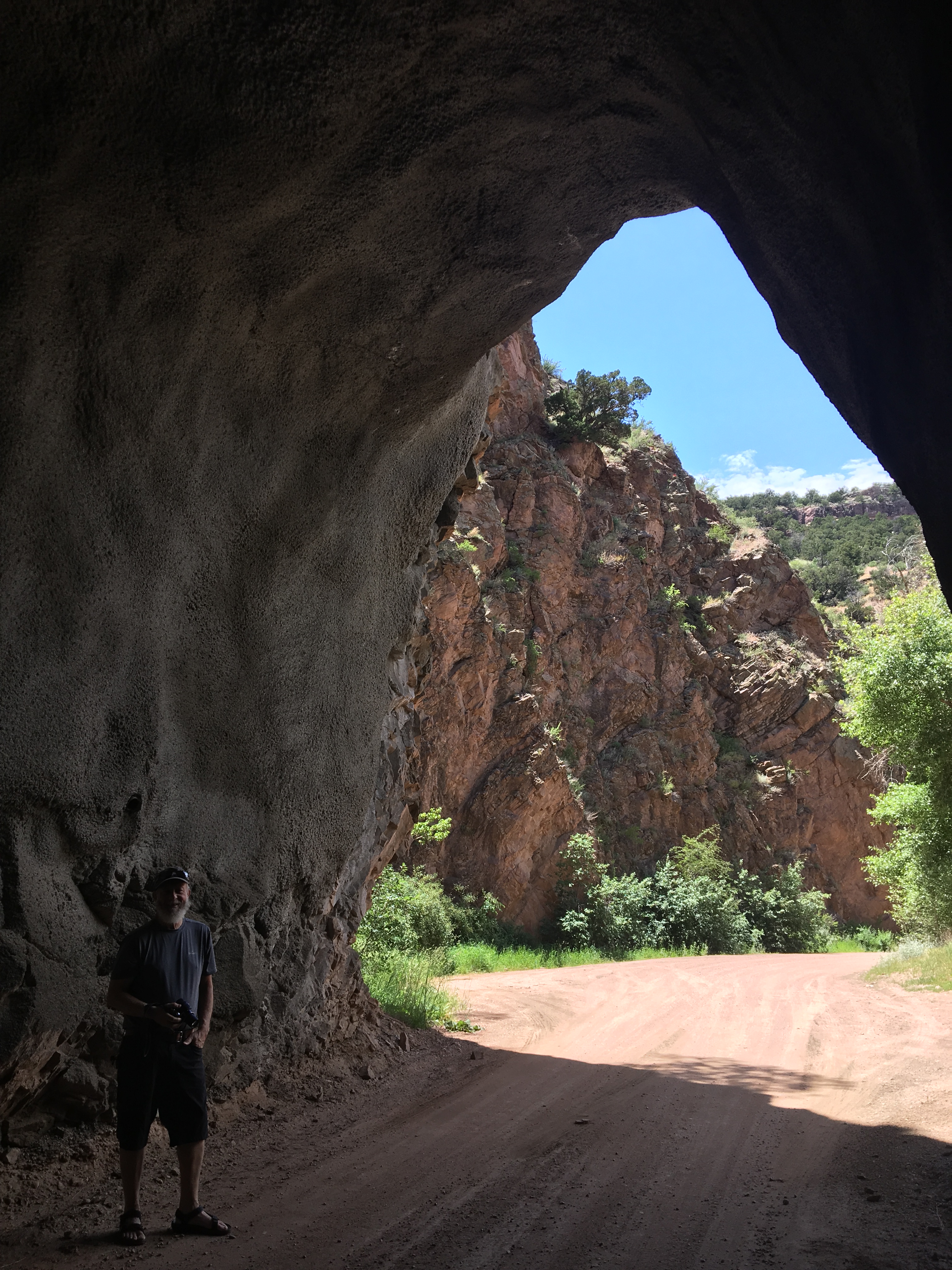 The landscape surrounding Canon City is majestic mountains and canyons. Most roads that veer off the main highways wind their way into the canyons. Phantom Canyon, just outside of town is one such road. As we head north on Phantom Canyon Road, we begin to climb from the city elevation (5400′ above sea level). The asphalt quickly gives way to dirt and gravel. The road narrows, though it is two way traffic and a surprising number of cars are traveling what we assumed was a quiet, lonely canyon drive. All along the canyon, which is land managed by the BLM (Bureau of Land Management) people are camped in vehicles, tents and lean to’s. On BLM land, you are allowed to set-up camp as you see fit. There are signs requesting that people carry out their trash and bury their own waste. Of course, all primitive camping expects that people will respect the land, though in actuality, there seems to be a preponderance of people who thumb their nose at our amazing planet as evidenced by trash, carved names in trees and railings and a general inconsiderate nature. Please do your part. Ok, sorry for the political interlude.