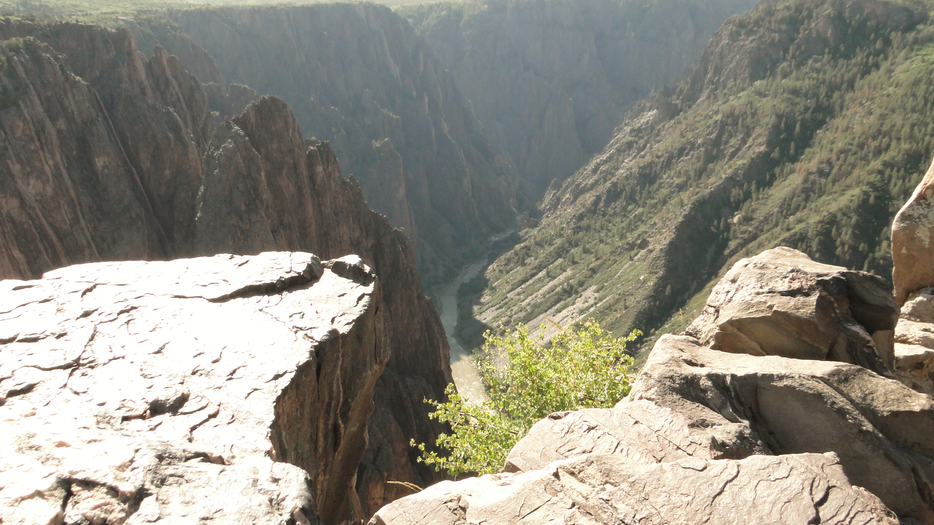 Just west of the Curecanti, the road begins to climb again as we approach the Black Canyon of the Gunnison National Park, our next destination. The Black Canyon at its tallest sheer cliff is 2,250 feet deep, but is only 40 feet wide at its narrowest point. The canyon owes its name to the narrow width which at some points only allows 33 minutes of sunlight per day and thus the walls appear to be black.  Below, the raging Gunnison River drops an average of 43 feet per mile. For reference, the Colorado River only drops 7.5 feet per mile. The Ute Indians called the Gunnison, “much rocks, big water” and avoided the area due to superstition.