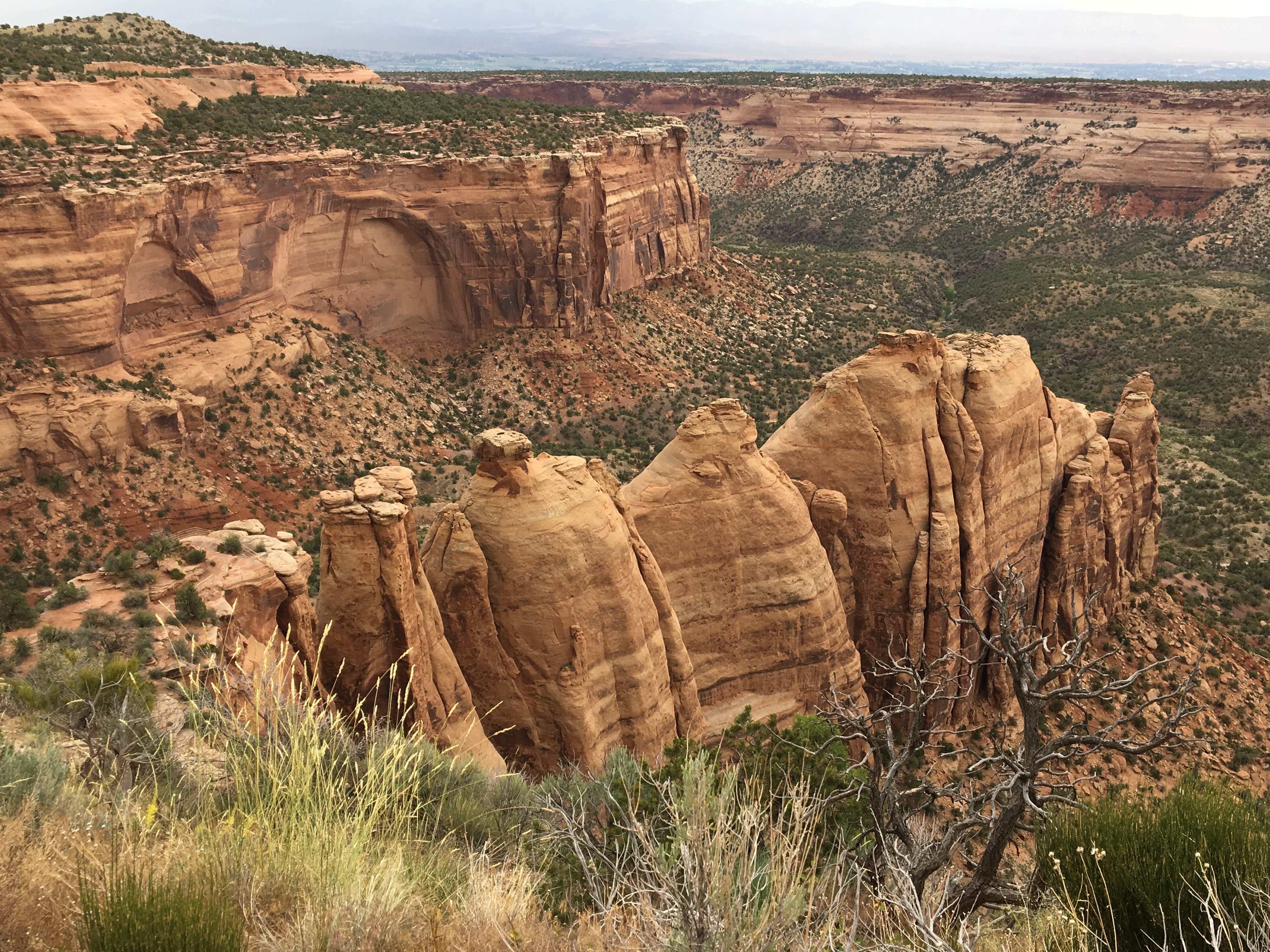 The camping at Colorado National Monument is considered primitive, in that there is no power. However, there are very modern clean bathrooms with flush toilets and sinks with running water. Our magnificent campsite was situated along the rim with an expansive view of the valley below and snow-capped mountains to the north.