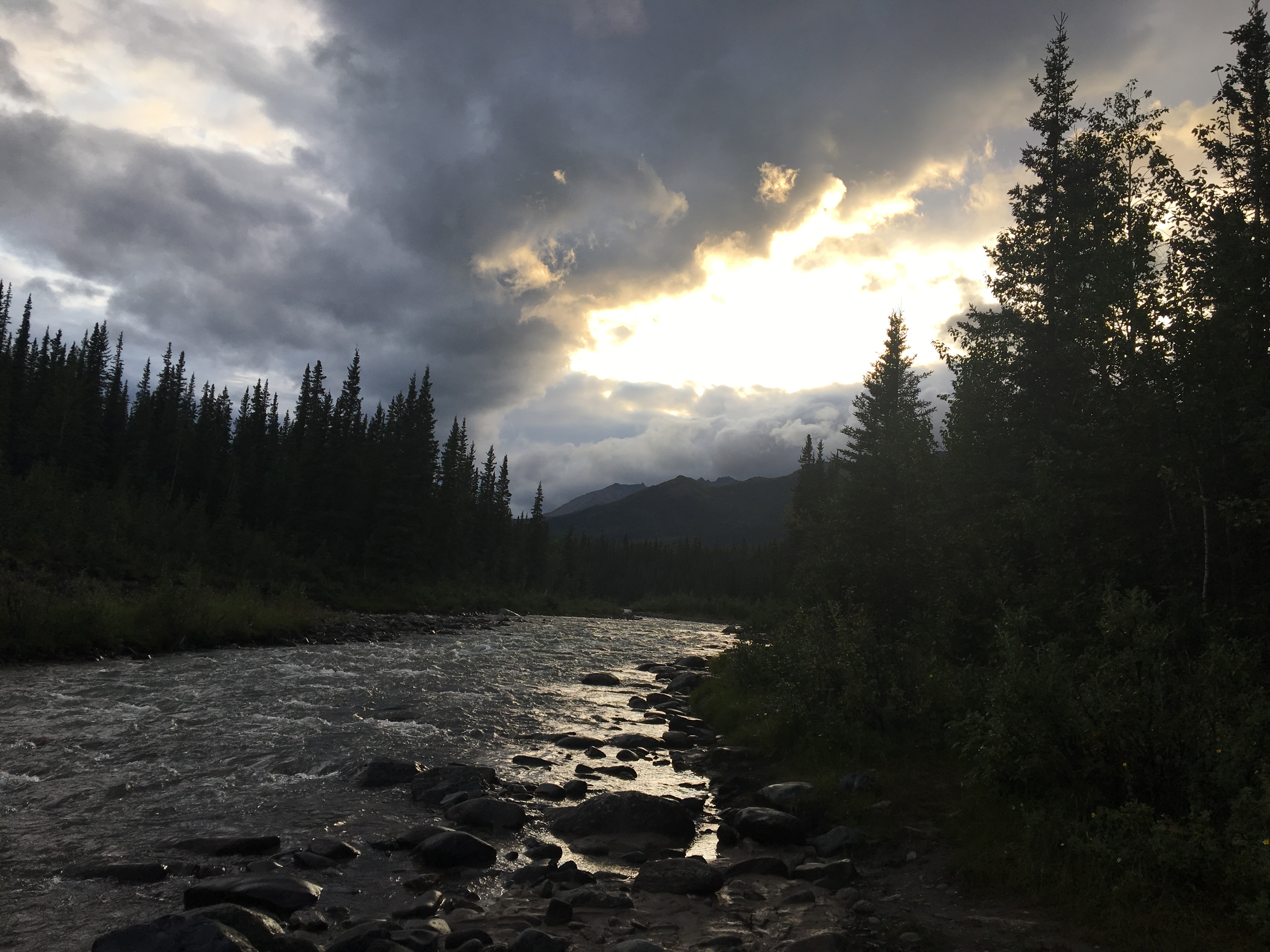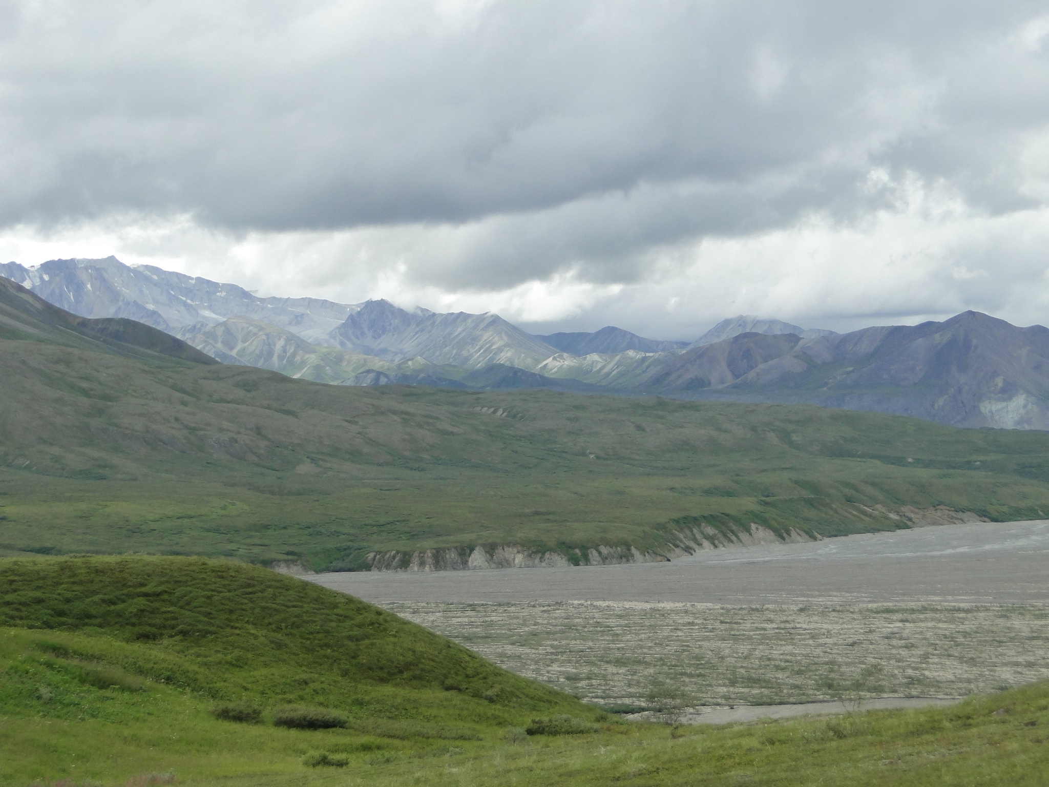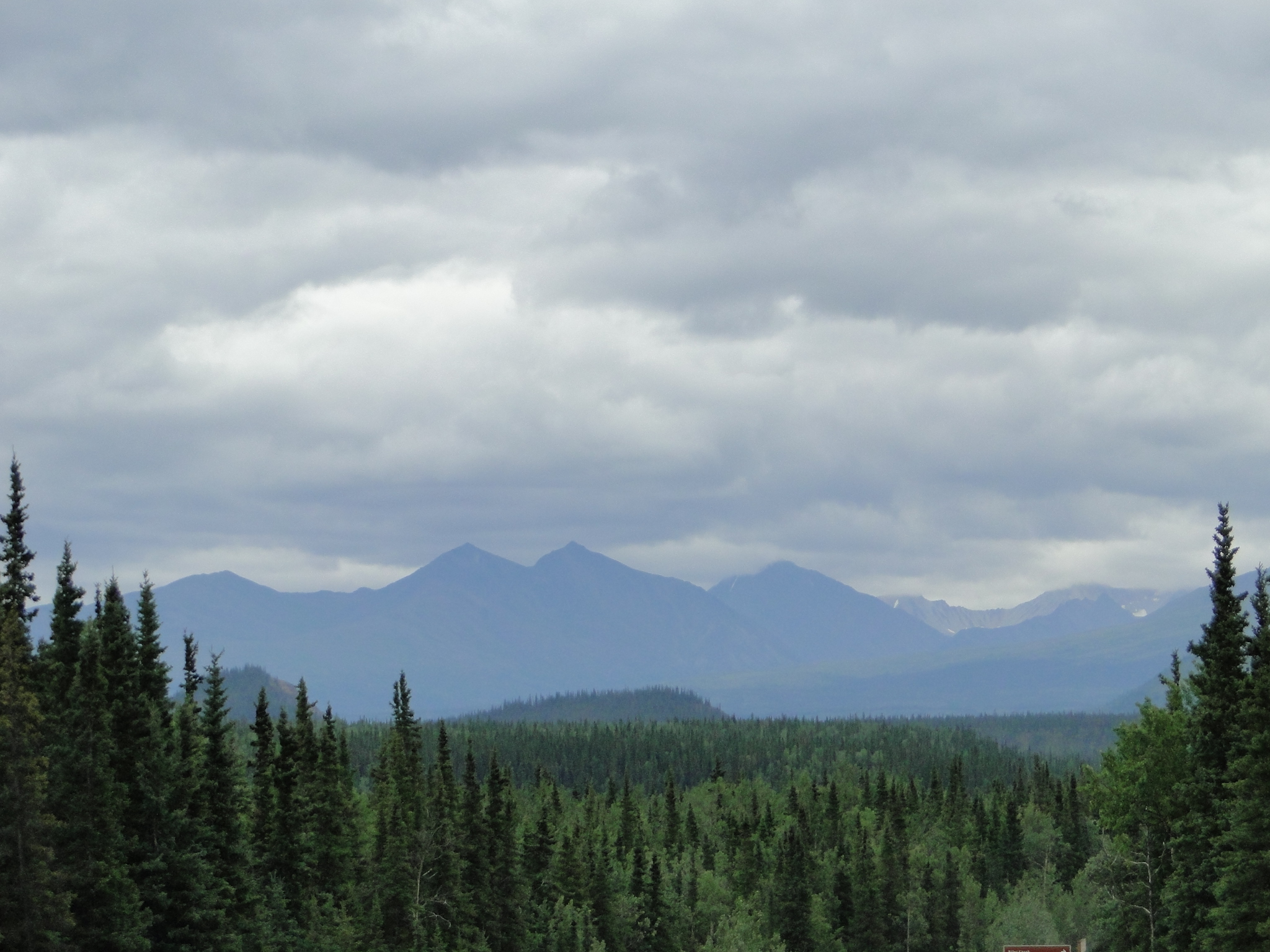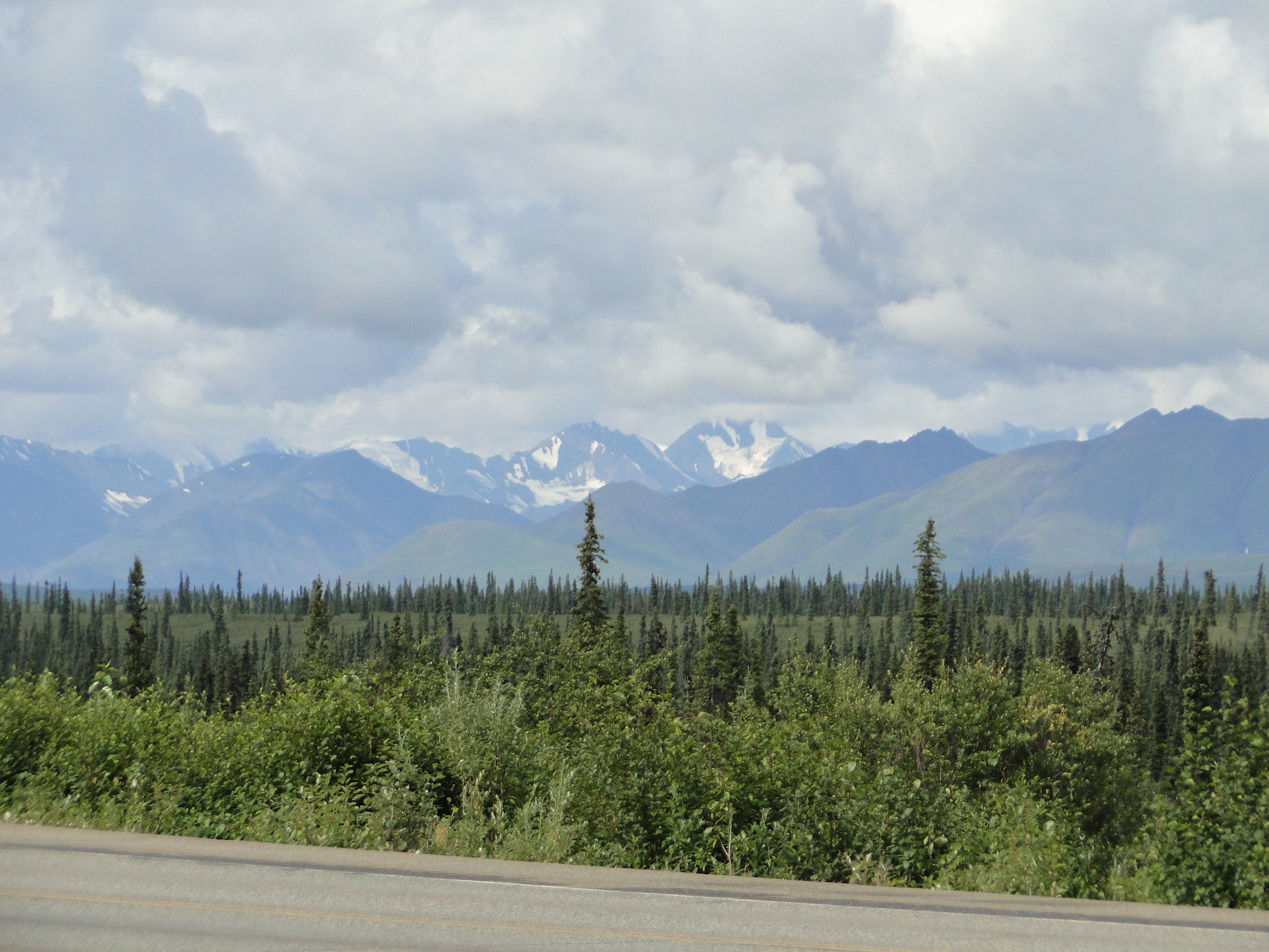 In 2011 we made our first trip to Alaska. On our last night there, walking around the campsite at 11 p.m. (no real total darkness in Alaska in the summer), we spotted a range of extremely high mountains in the near distance. The Glenn Highway, an east- west route across southeastern Alaska rides between the Chugach Range and the Alaska Range. The route looked enticing and though we did not have time to drive that road on that night, we decided that the fulfillment of that desire would be our next life direction. And we finally returned to Alaska, as dreamed 8 years ago.