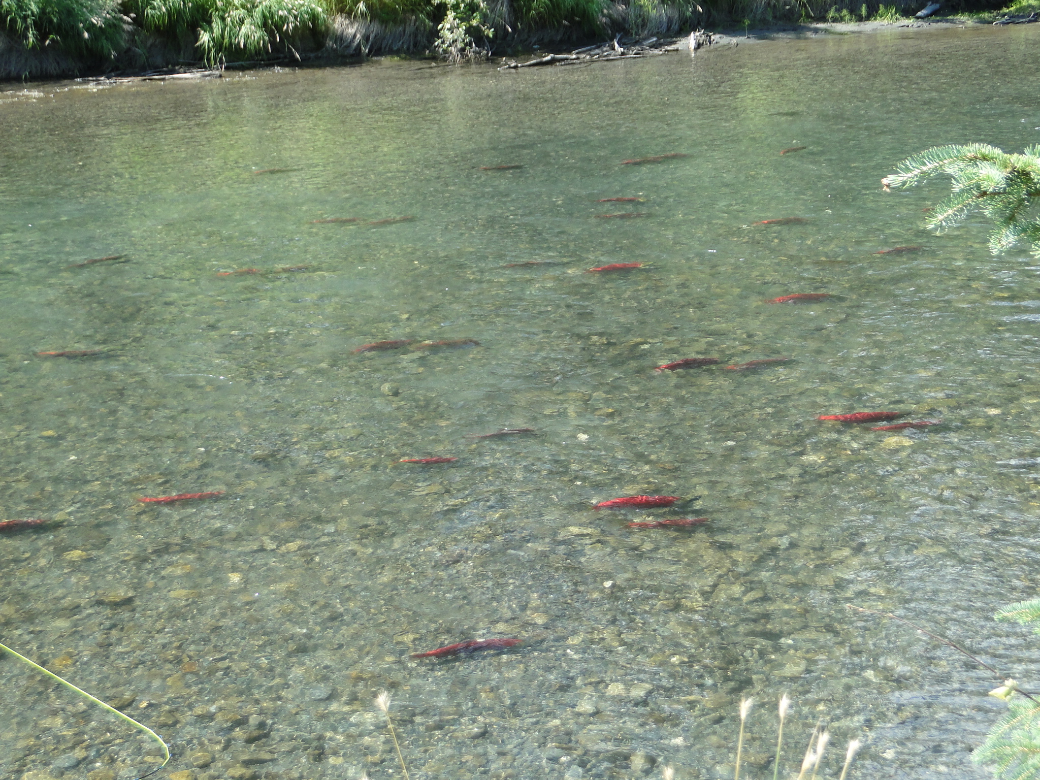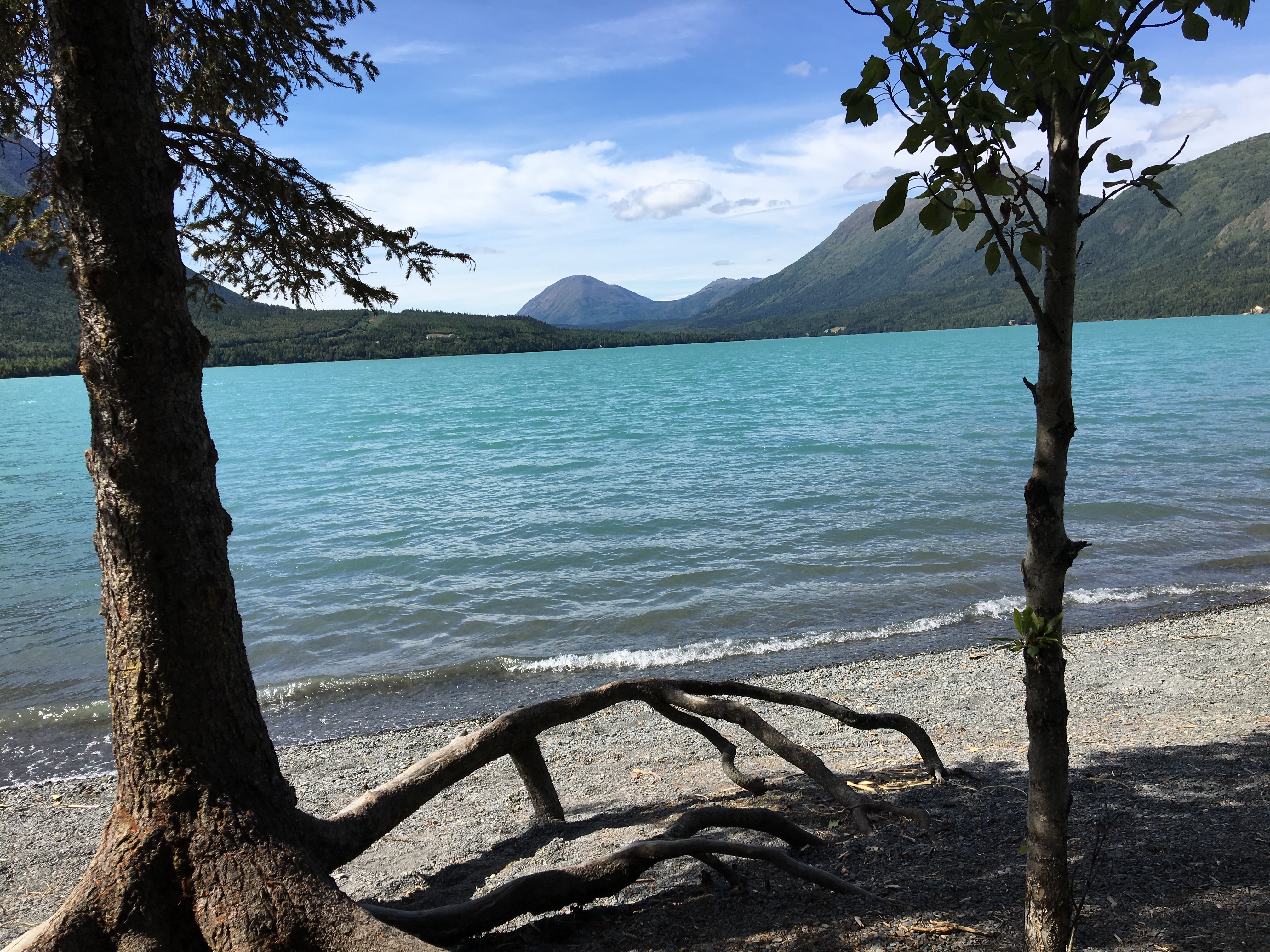 After two days in Seward we moved back north to pick up the Sterling Highway running east/west across the Peninsula and found our way to the Crescent Creek Campground, another dry campsite that is nestled in a tight coniferous forest adjacent to the beautiful Crescent Creek. In this creek we see King Salmon in their last days as they are spawning and thus off limits to fishing. This gem of a campsite is very limited in numbers and we were fortunate to have nabbed the very last site. ($7/night with America the Beautiful pass)