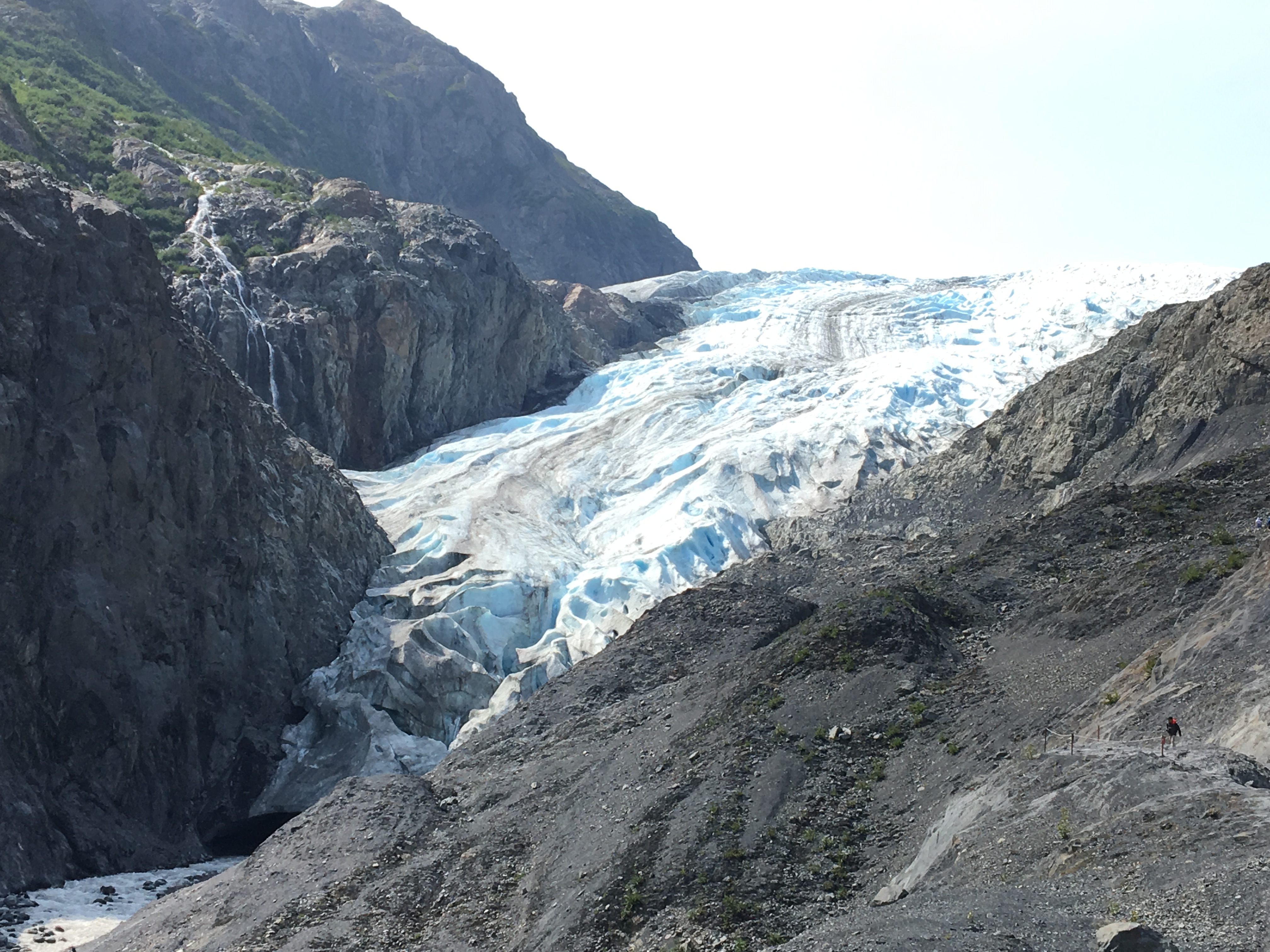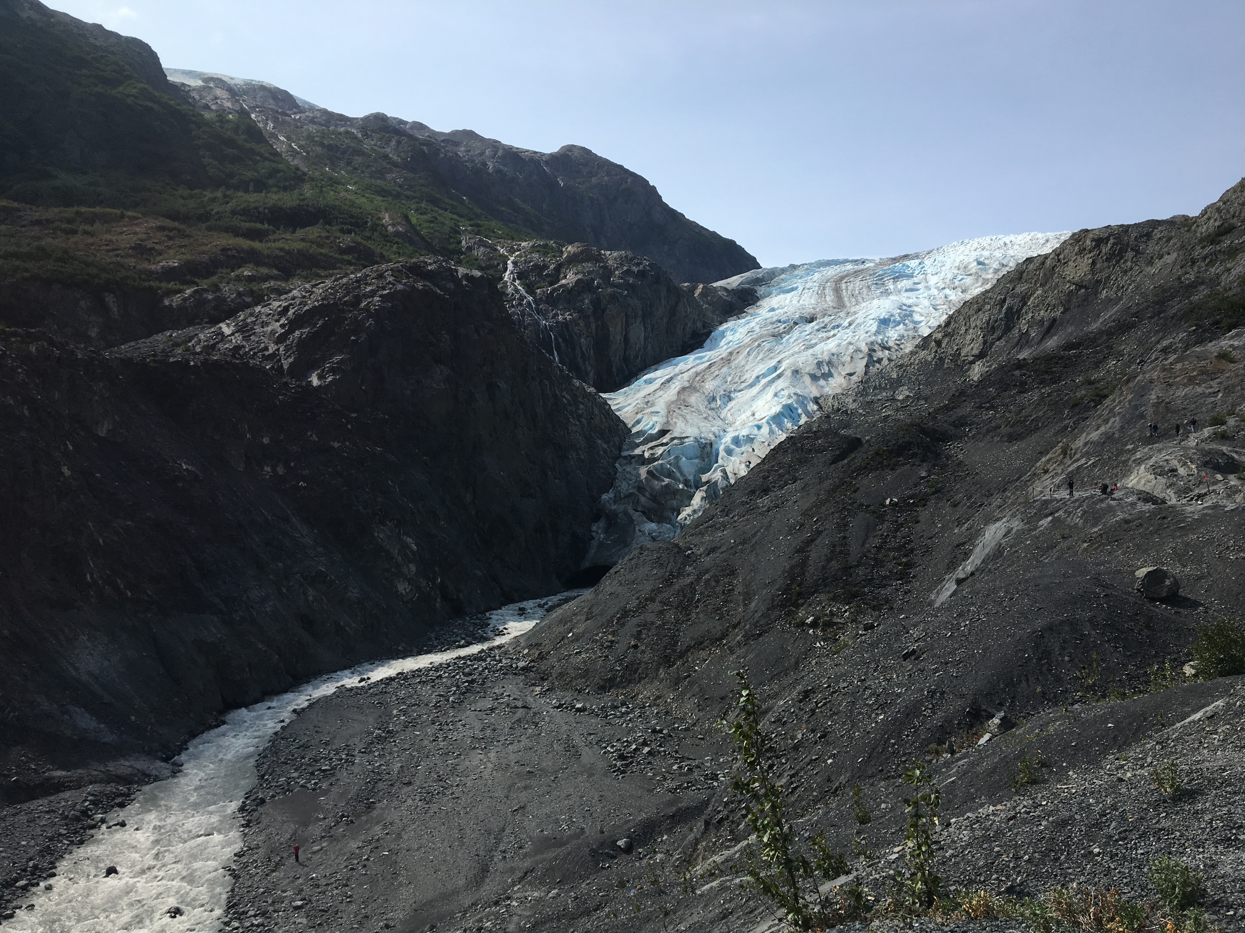While in Seward, we have twice now hiked to Exit Glacier, one of the most accessible glaciers in Alaska. One can view the glacier from several vantage points involving some moderate hiking. There is also a wheelchair accessible path that happened to be closed at this time as a mama bear was in the vicinity with her cubs.