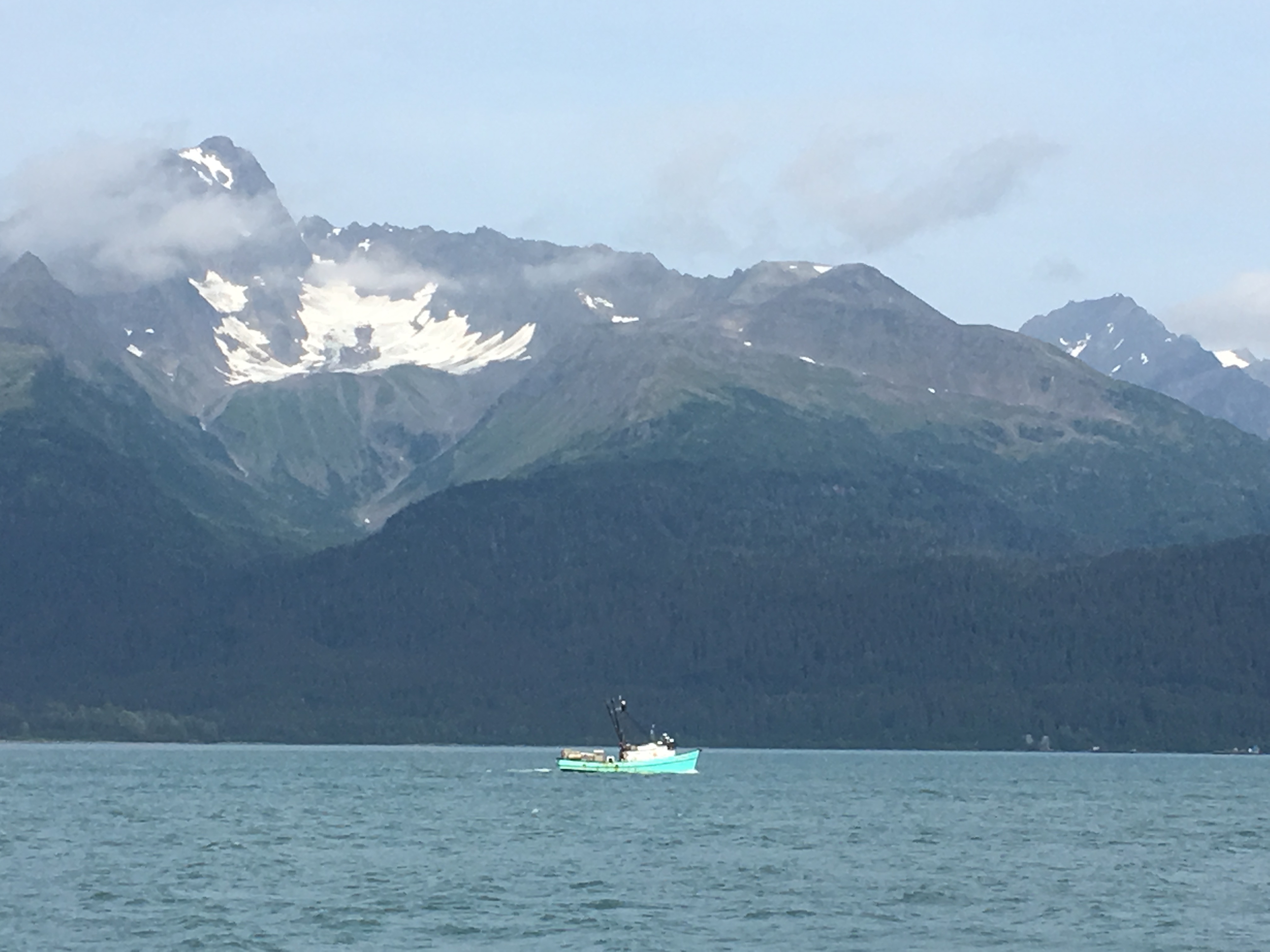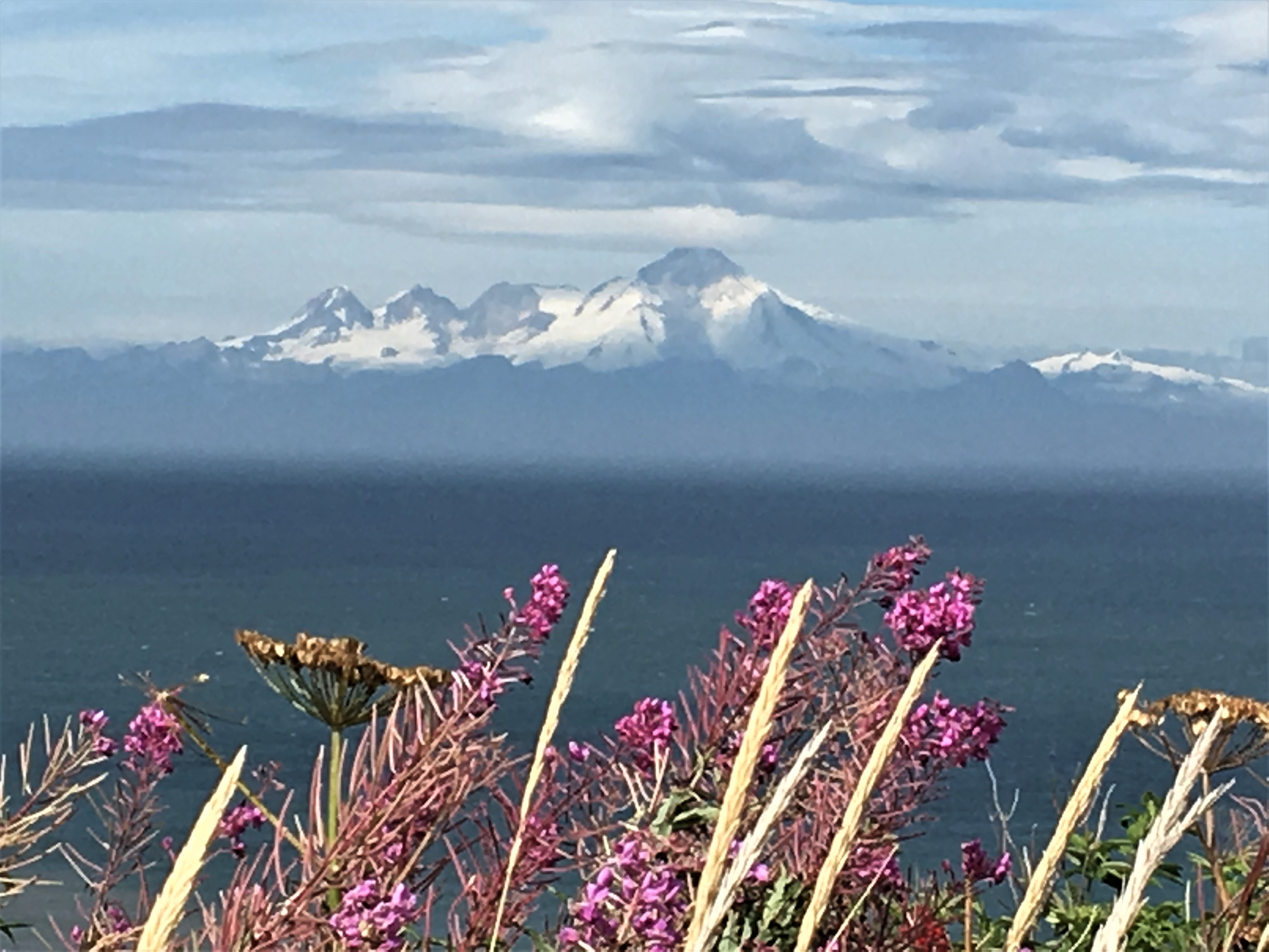 Continuing south now on the Sterling, we begin to see the rising volcanoes across the Cook Inlet as we near Homer. Redoubt Volcano (Mount Redout) at 10,197 ‘ is an active stratovolcano that last erupted in 2009. Mount Iliamna, a glacier covered stratovolcano stands at 10,016’. Iliamna last erupted in 1876, though as part of the Pacific Ring of fire, these volcanoes are never considered dormant.
