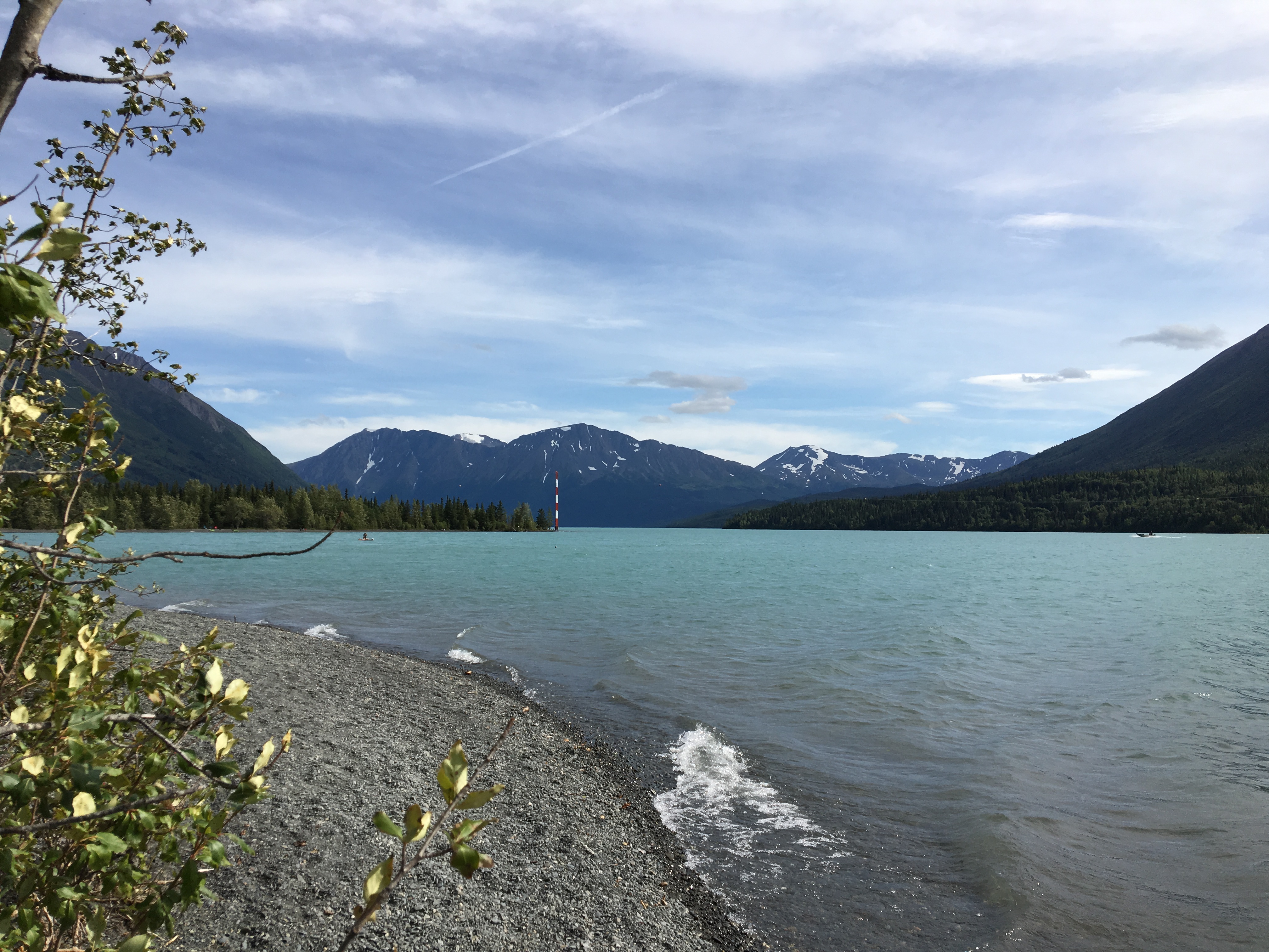 While staying at Crescent Creek for two nights we were able to spend the second day at Kenai Lake, at almost 14,000 acres, forming the headwaters of the Kenai River. The lake and the river are famous for world class fishing and attract people from all over the world.