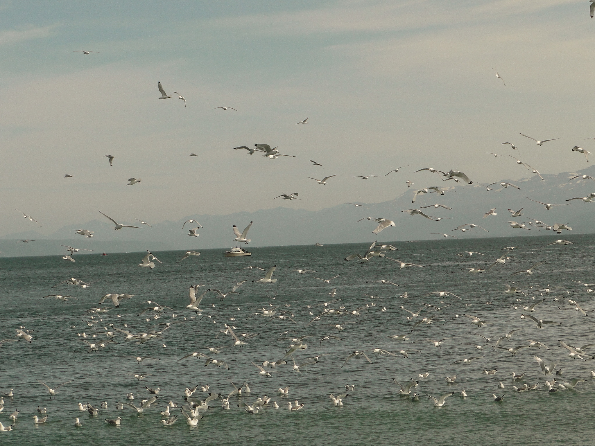 Beluga Lake and the nearby mudflats offer great opportunities to watch waterfowl and shorebirds. In the waters off of the Homer Spit, at the very end of the peninsula, tour operators offer trips into the Kachemak Bay to observe the marine life, including sea lions, otters, seals, porpoises and whales. There are also water taxis to ferry you across the bay to the Kachemak Bay State Park where one can hike with relative ease to the lake at the foot of Grewingk Glacier. We had actually booked a water taxi and canceled due to fog in the mountains. Though they were willing to transport us across the Bay, the lack of visibility dimmed our enthusiasm for this hike.