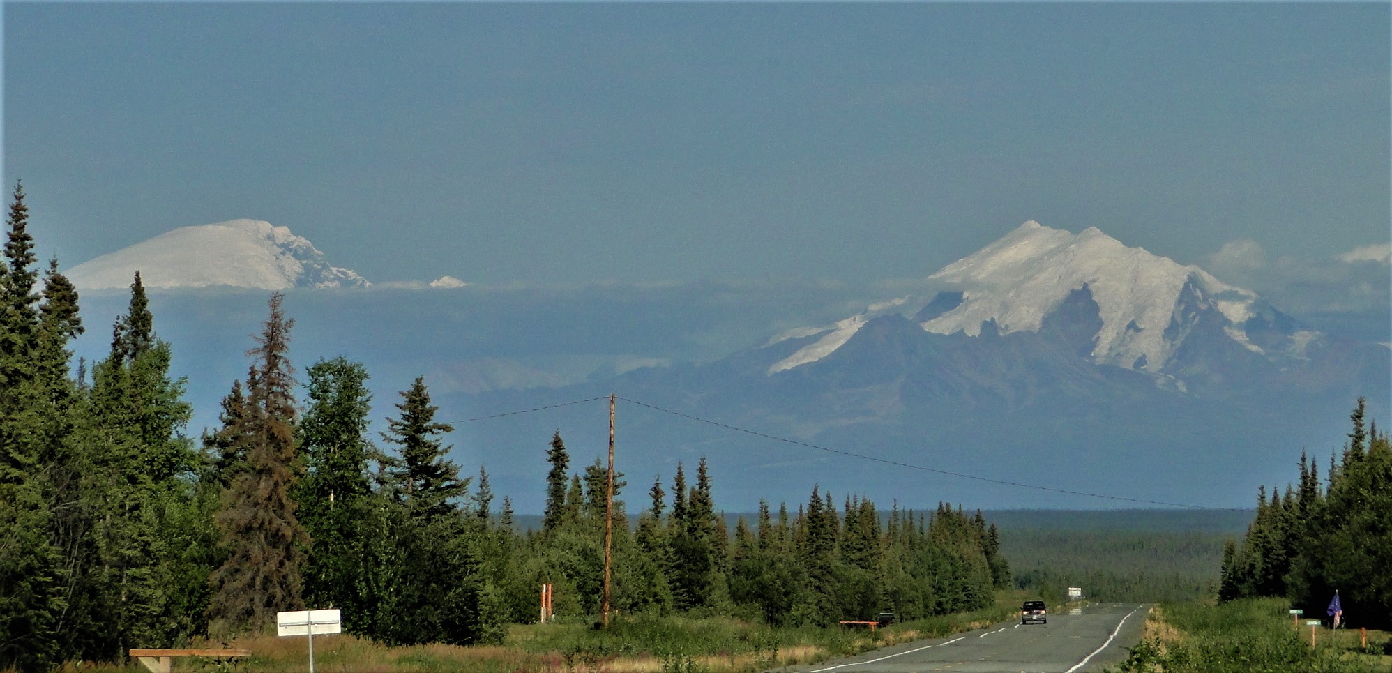 After a brief stay at Tolsona, we continued in an easterly direction to the intersection of the Glenn Highway and the Richardson Highway that will take us to Valdez. As we approached the Richardson intersection, we are facing directly into the enormous Wrangell Mountains towering over the landscape. Mount Sanford at 16,237 feet, Mt. Drum at 12,010 feet and Mt. Wrangell at 14,163 feet welcome you to the Wrangell-St. Elias National Park, the largest national park in the country. Southbound on the Richardson, following the Copper River, we stopped at the very new Wrangell Mountain Visitor Center that features several wonderful buildings that include a hands-on display, a NPS interpretive film, a bookstore, restrooms and a boreal hiking trail.