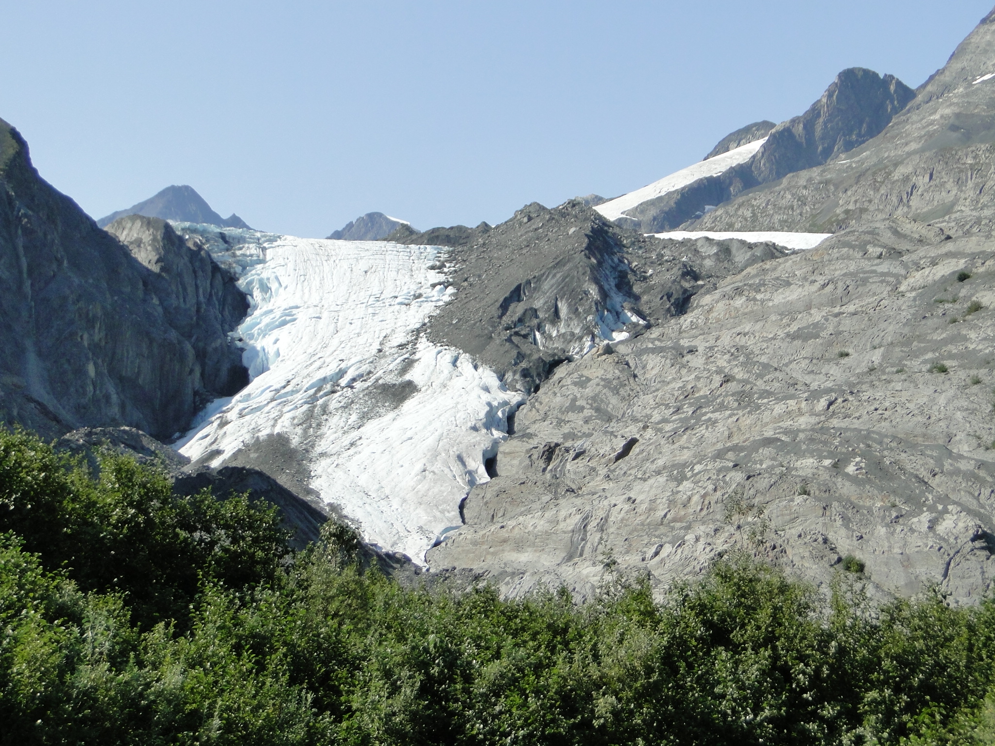 Continuing south on the Richardson, we begin to make the long descent into Valdez. The road is once again a panorama of jagged peaks dotted with glaciers. This scene, though repeated often in our journey, is always a joy to behold. The first major stop coming down into the valley is the Worthington Glacier. This glacier is quite easily accessible from the parking area with hiking trails to the base as well as the hill adjacent where you can access an enormous view from above the glacier.