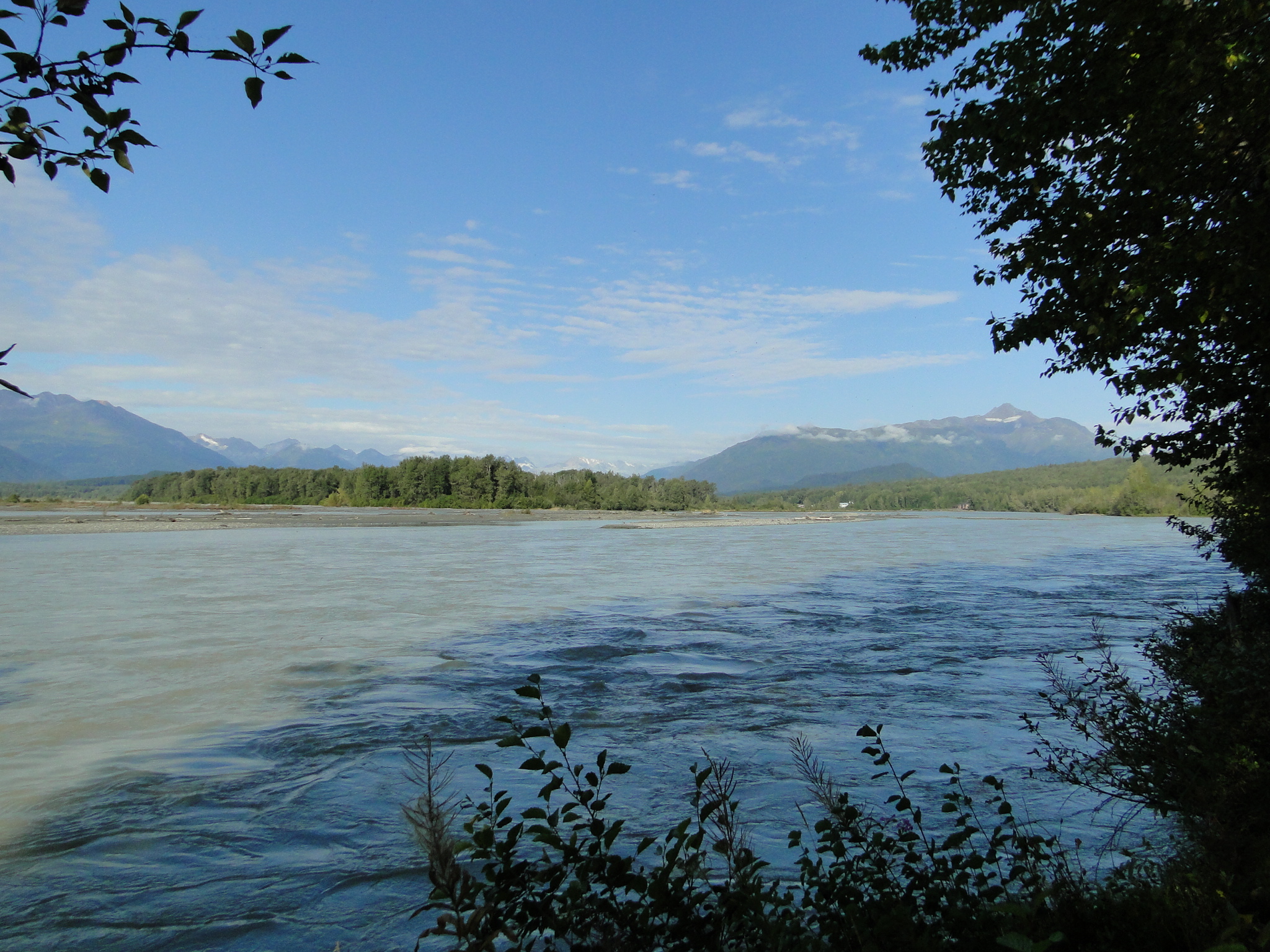 The next day we move to Salmon Run Campground, a small site with only 15 sites on a bluff overlooking the Chilkoot River Valley. Salmon Run has power hook-up only but has very clean bathrooms and coin operated showers. The view; however, warranted the move to this new site.