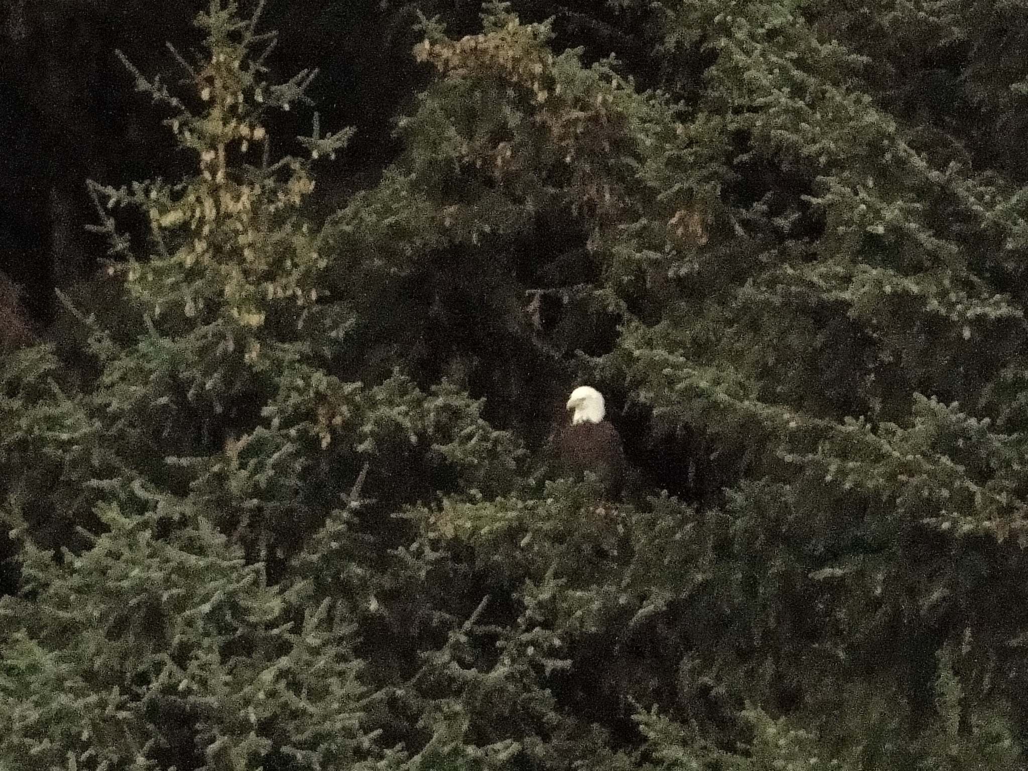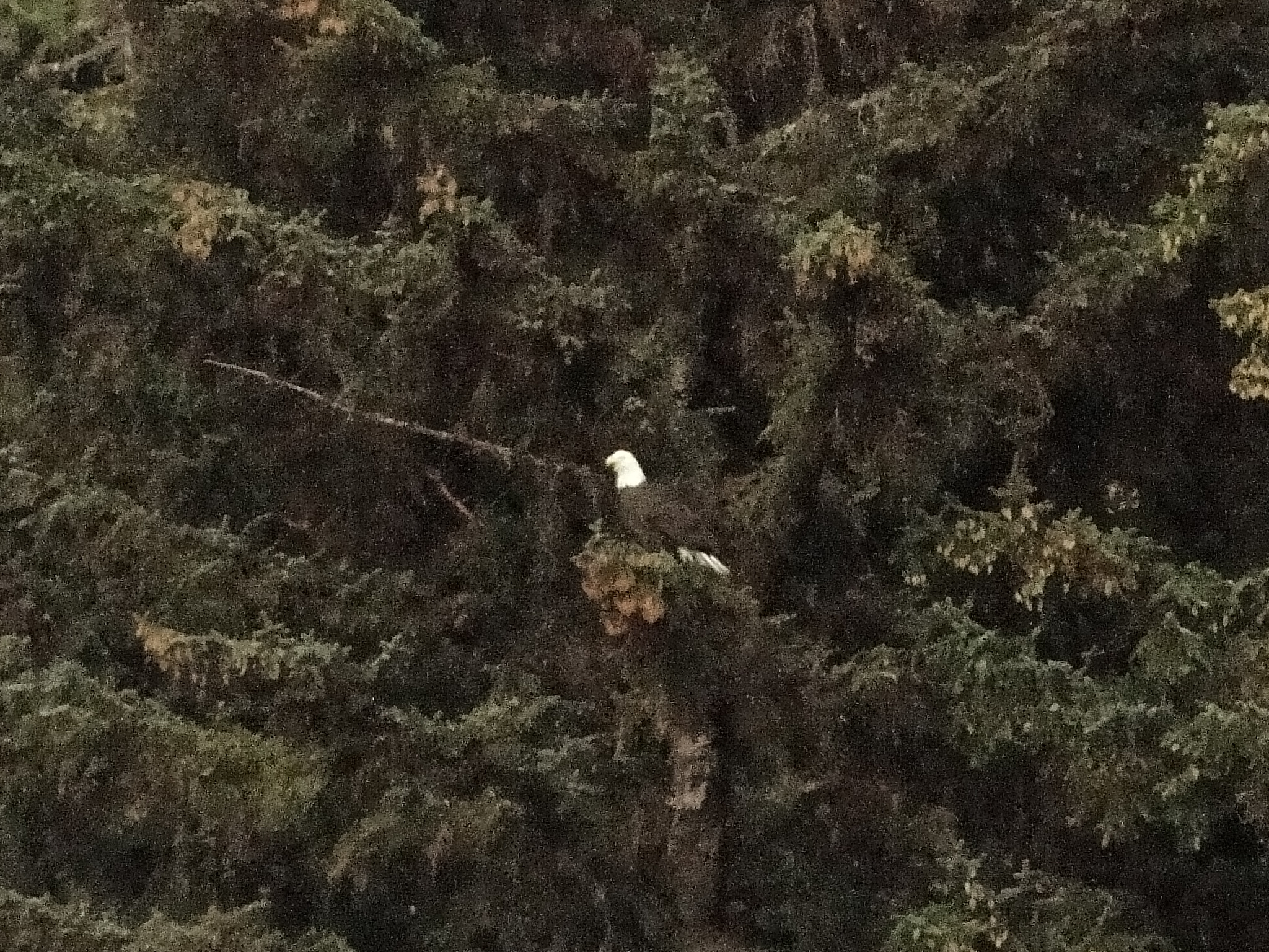 After dinner we make another foray up the Chilkoot River in search of bears and bald eagles. This evening we spot three eagles at the same time perched high above the river. Unfortunately their distance was past the limit of the telephoto lens.