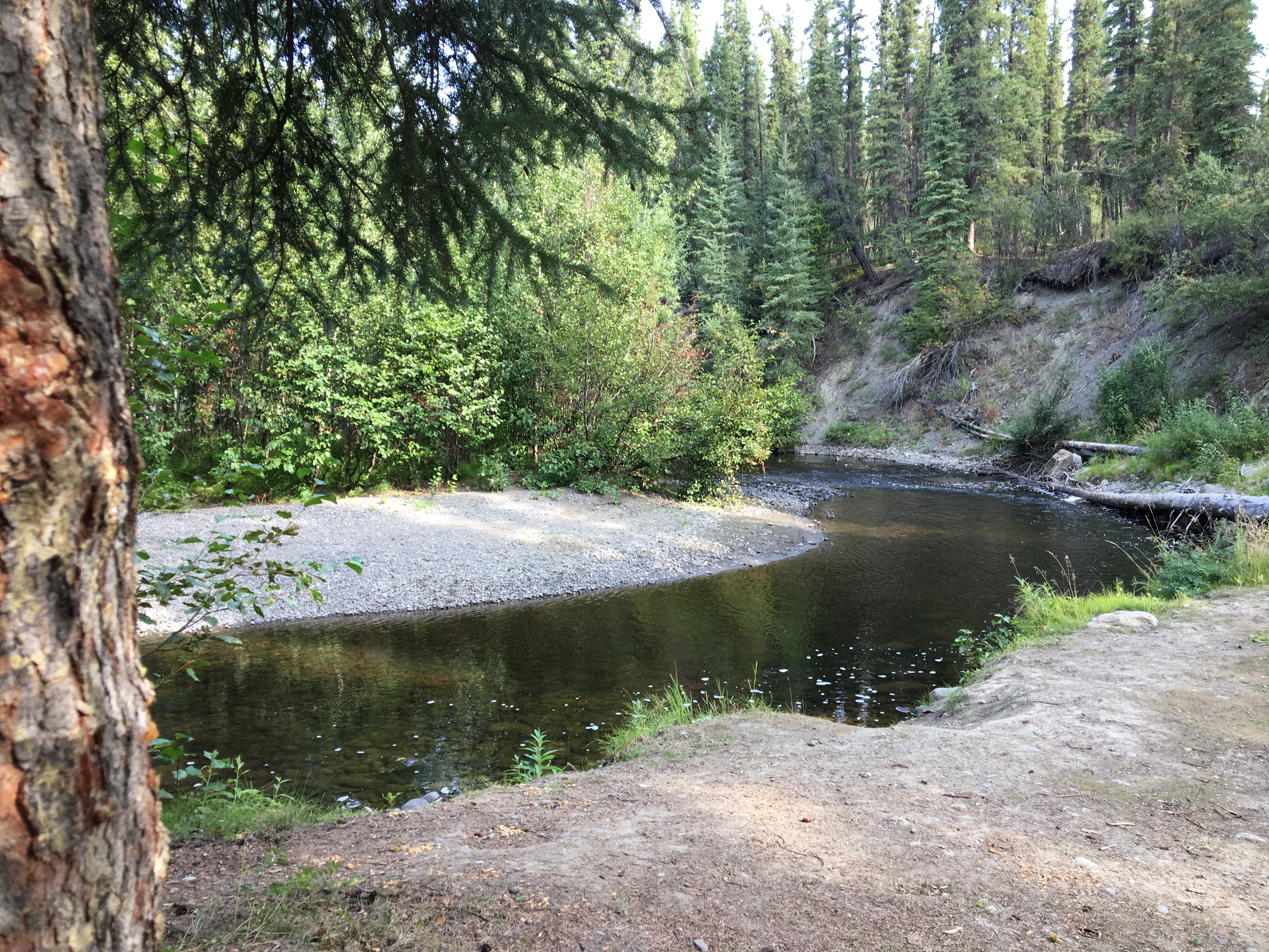 Our campsite destination for this night was the Tolsona Wilderness Campground near Glennallen. This was a beautiful wooded campground with all sites along the small creek that ran through the area. FHU and showers are included and with Good Sam Club a total of $32/night.