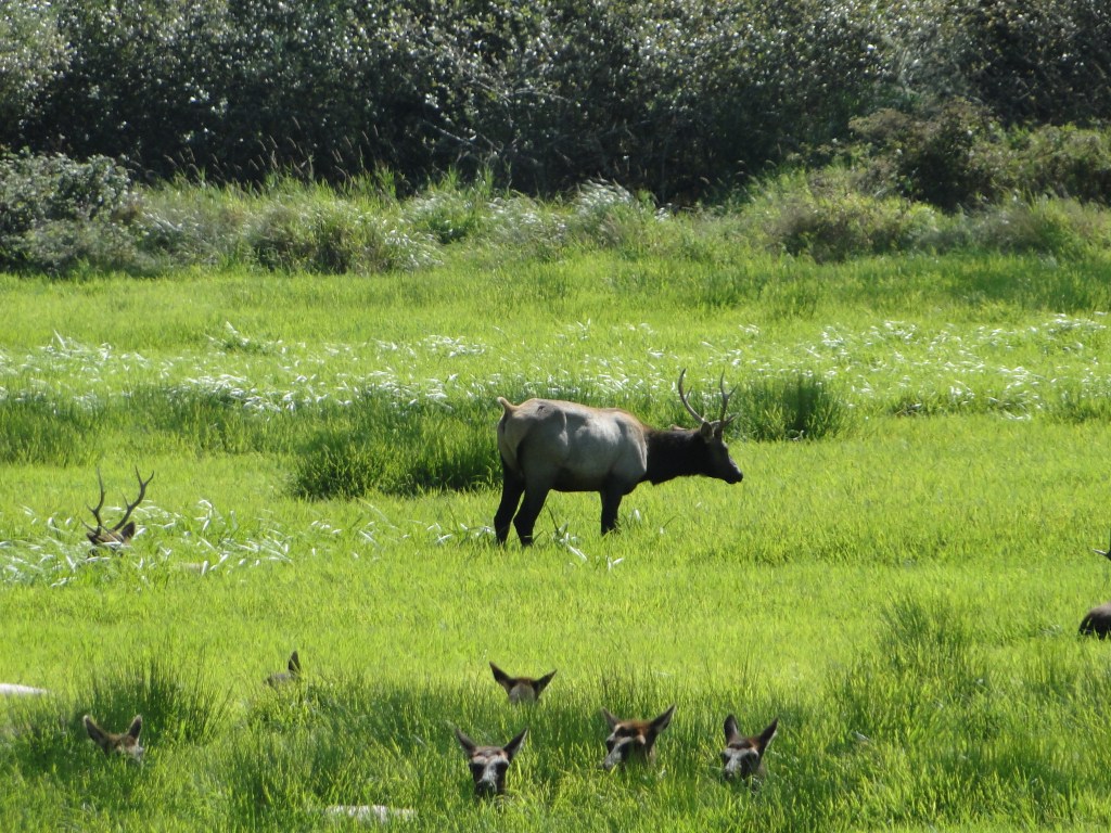 Day 2 at Umpqua, after a brief obligatory stop at the lighthouse (nothing particularly exciting there), we went in search of the herd of Elk that roam near the Dean Creek Elk Viewing Area, about a 20 minute drive from the campground. The wild Roosevelt Elk live here year round and the site is jointly managed by the Oregon Department of Fish and Wildlife and the US Bureau of Land Management.